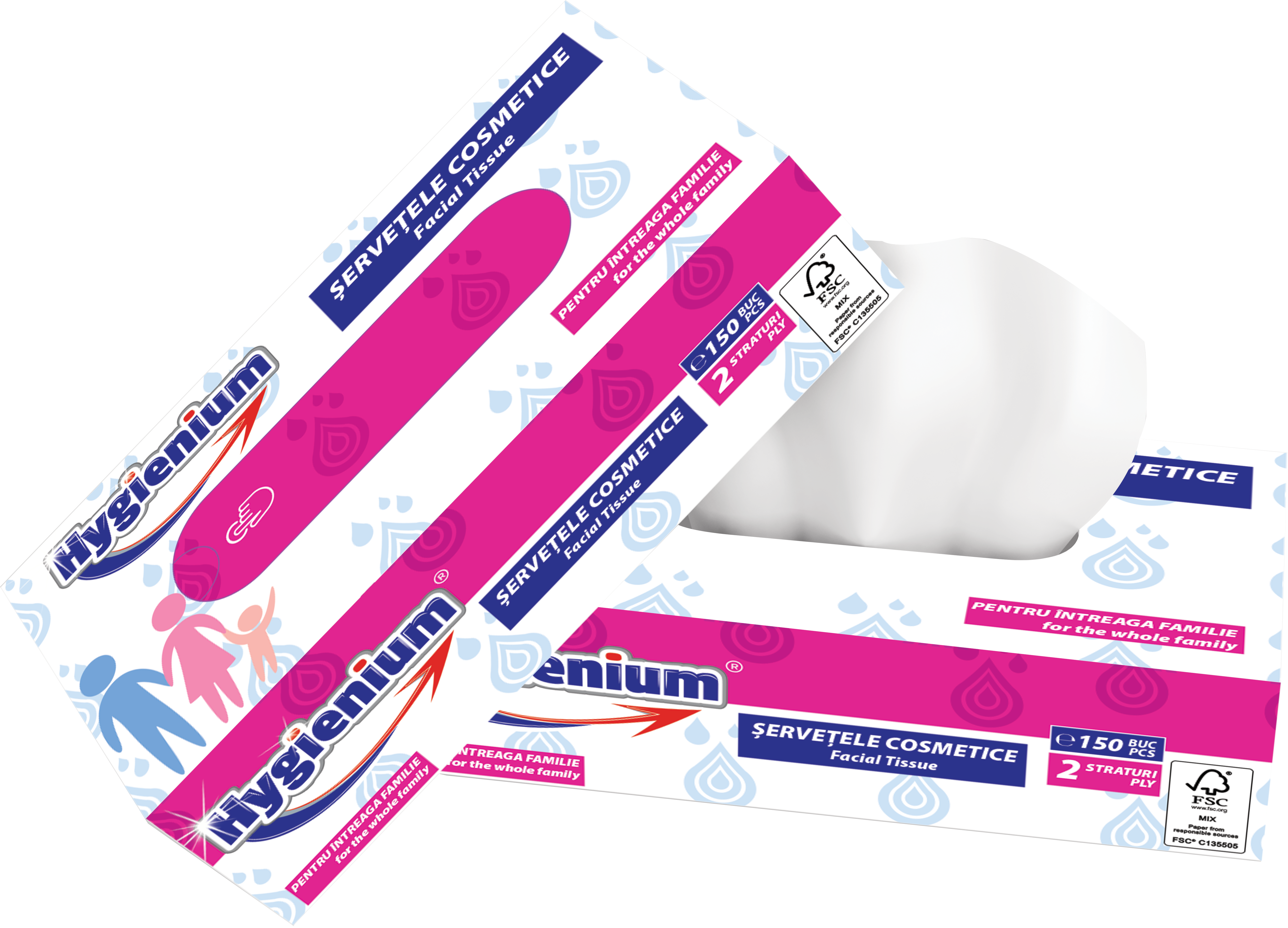 Servetele Cosmetice Hygienium Family 150 Buc, sunt șervețele în două straturi de unica folosinta, folosite pentru curatarea tenului sau aplicarea diferitelor solutii. Șervețele cosmetice sunt fabricate dintr-o țesătură delicată netesuta.