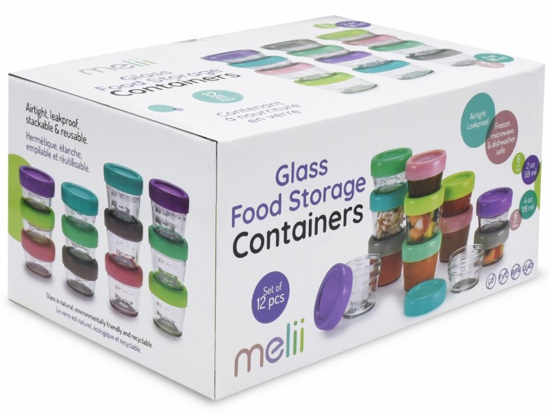 Cu setul de 12 recipiente din sticla pentru hrana poti transporta si depozita gustarile intr-un mod sanatos Acest recipient de mancare de dimensiuni potrivite pentru copii face gustarile distractive si are in acelasi timp un capac ermetic si antipicurare pentru a preveni mizeriile. Recipientele de 59 ml si 118 ml pentru mancare pentru bebelusi de la Melii fac usor de portionat depozitat si servit mancarea bebelusului blocand prospetimea prevenind inghetarea in congelator si evitand varsarea in geanta pentru scutece sau cutia de pranz. Inelele din silicon inchid perfect capacele. Marcajele durabile de masurare meticulos gravate pe sticla raman lizibile in timp permitandu-va sa portionati cu usurinta cantitatea de care aveti nevoie. Fabricat din sticla un material natural prietenos cu mediul si reciclabil Capace ermetice si antipicurare 100 sigur pentru alimente neporos si fara substante chimice nocive fara BPA plumb cadmiu PVC ftalati Potrivit pentru congelator cuptor cu microunde si masina de spalat vaseSpecificatii