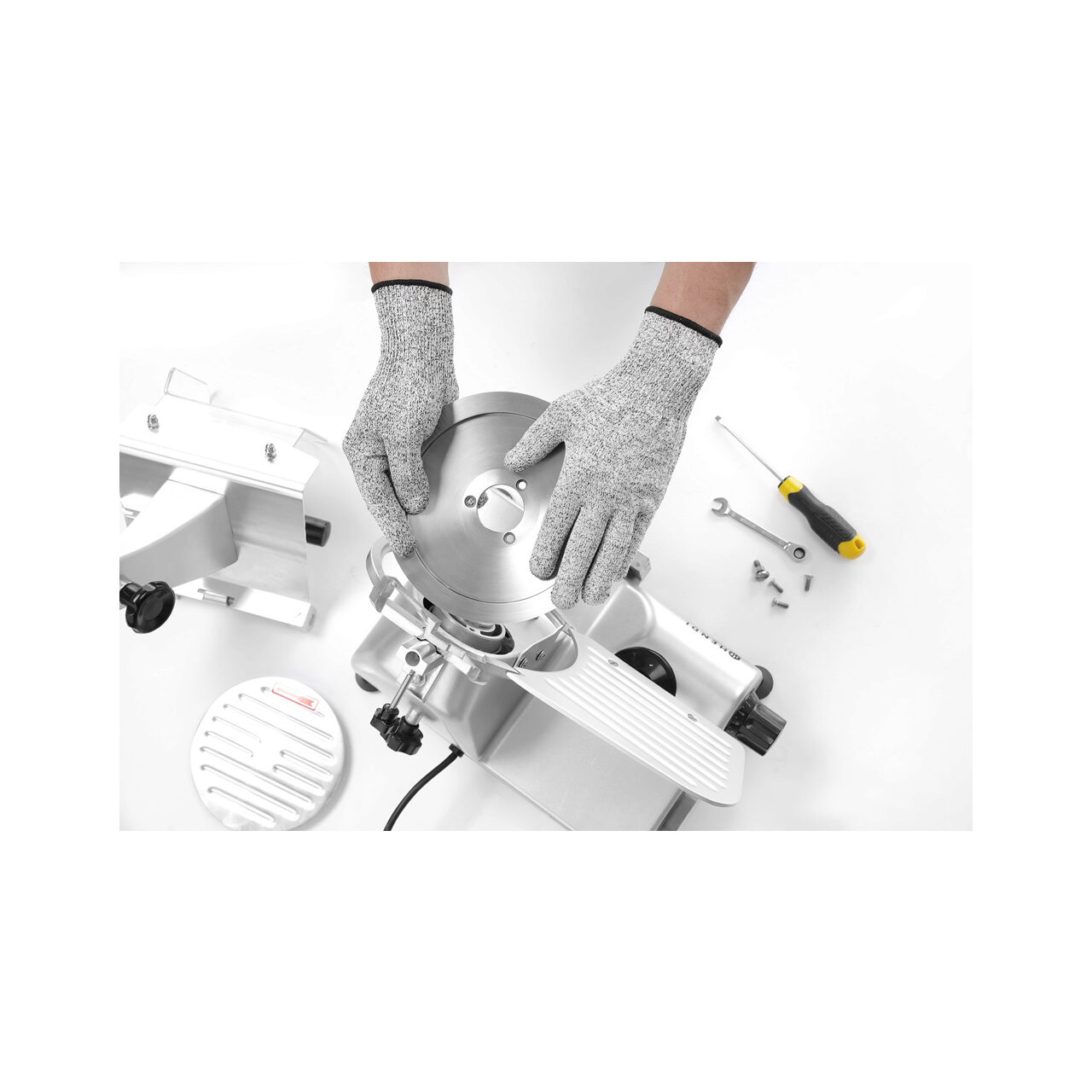 - Ofera protectie pentru manipularea cutitelor ascutite in bucataria profesionala, cum ar fi cutitele de bucatarie. Amestecul de HPPE, fibre de poliester si nailon face ca aceste manusi sa fie durabile si confortabile.