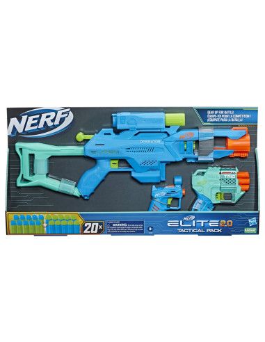 Triplati-va actiunea de lupta cu Elite Nerf 2. 0 Tactical Pack care include 3 blastere si 20 proiectile Nerf Elite Lanseaza-te in batalii de 2 proiectile cu Operator DB-2 un blaster care trage cu 2 proiectile intr-un rand are un locas pentru 2 proiectile amorsare prin tragerea manerului tinta si pat arma. Pentru un atac cu trei proiectile apuca blasterul Trio TD-3 care dezlantuie 3 proiectile intr-un rand are 3 locasuri pentru proiectile si o sina tactica. Pregateste-te pentru asul din joc cu As SD-1 blasterul care lanseaza un proiectil are un sistem de amorsare cu maner si capacitate de stocare un proiectil. Aceste blastere sunt distractive si usor de utilizat astfel incat veti fi sari in jocuri Nerf in cel mai scurt timp Incarcati tintiti si apasati tragaciul -3 pasi simpli- este tot ceea ce trebuie pentru a incepe sa jucati Acest pachet de 3 blastere este excelent pentru fanii Nerf care doresc sa-si construiasca colectiile cu un blaster pentru fiecare provocare competitiva. Este un cadou minunat pentru toata lumea Ochelari recomandati neinclusi . Nu sunt necesare baterii.Specificatii