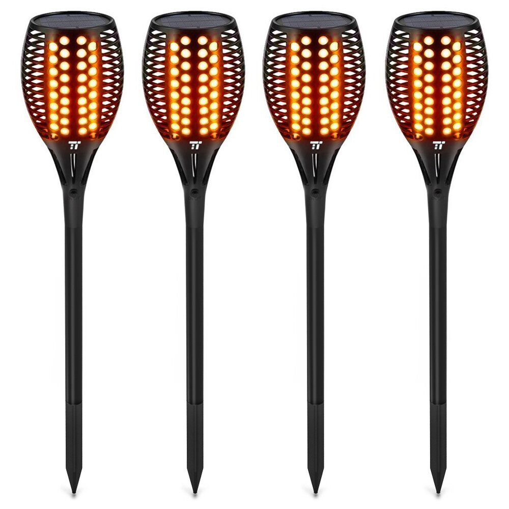Set 4 lampi solare LED TaoTronics TT-SL004 pentru curte, gradina si balcon, efect torta, Negru