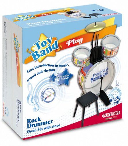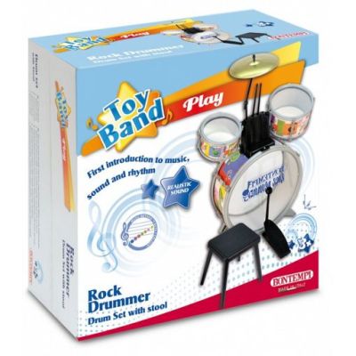 Setul de tobe pentru copii contine: 1 toba bass cu diametru de 38. 5 cm si pedala, 2 tobe laterale cu diametru de 17 cm, respectiv 21 cm, talger de 21 cm, 2 bete pentru tobe si 1 scaun de plastic. Sunete realistice. Jucaria este confectionata din materiale rezistente (plastic si elemente de metal) si are un design compact. Beneficii: familiarizarea cu muzica si ritmul, dezvoltarea abilitatilor sociale si cognitive, coordonarea miscarilor, atentia distributiva.