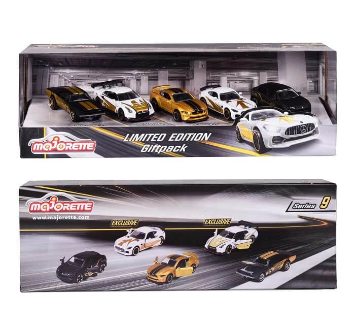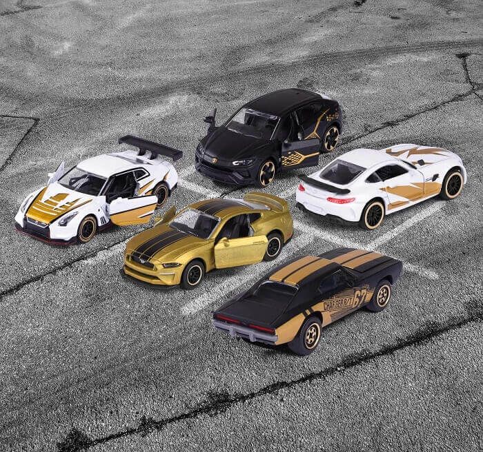 Set cadou cu 5 masinute din metal editie limitata cu design auriu ideale pentru colectionari si iubitorii de masini. Setul contine urmatoarele modele cu design realist Dodge Charger R T Ford Mustang GT si Lamborghini Urus precum si 2 modele exclusive care se gasesc doar in acest set - Mercedes-AMG GT R and the Nissan GT-R Nismo GT3. Lungime masinuta 7 5 cm.Specificatii