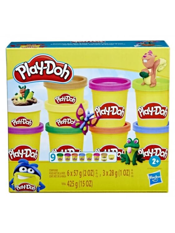 Setul de plastilina colorata Play-Doh Colorful Compound 9 Packs este o rampa de lansare distractiva pentru creativitatea copiilor Baietii si fetele cu varste de la 2 ani in sus vor folosi cu mare placere cele 9 culori vii Play-Doh pentru a modela creatii colorate stranii si originale. Cu rezerve de 28 34 g si 56 68 g in culori asortate seturile de plastilina Play-Doh pot fi folosite in clasa pentru activitati distractive pentru a umple cosurile de Paste pentru a umple sosetele sau pot fi oferite cadou copiilor care iubesc activitatile artistice si lucrul manual.Specificatii