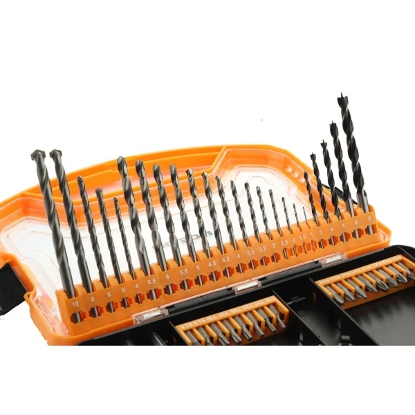 Setul RBB62 este un pachet complet pentru profesionisti si amatori de bricolaj, fiind echipat cu toate sculele necesare pentru o gama larga de lucrari. Acesta contine 62 de piese, incluzand burghie HSS de inalta calitate pentru metal, burghie pentru zidarie si lemn, biti pentru surubelnita, chei tubulare, limitatoare de adancime pentru burghie, precum si un zencuitor si suport magnetic pentru organizare. Toate piesele sunt fabricate din materiale durabile, precum otelul CRV6150 si otelul 50BV30, pentru performante optime in utilizare.