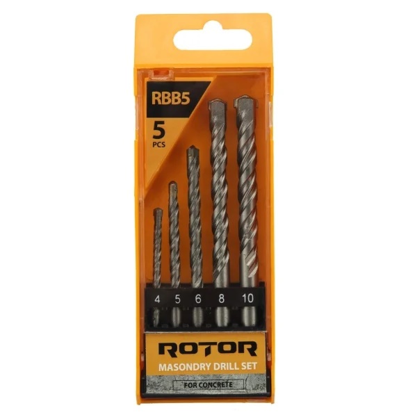 Setul RBB5 de la ROTOR este special conceput pentru a face fata celor mai dificile lucrari de perforare in beton si materiale dure. Aceste burghie sunt fabricate din otel de inalta calitate, cu varf carbid, pentru a asigura taierea rapida si eficienta a betonului, cimentului si altor suprafete dure. Setul include 5 dimensiuni diferite, astfel incat sa aveti intotdeauna un burghiu adecvat pentru orice lucrare.