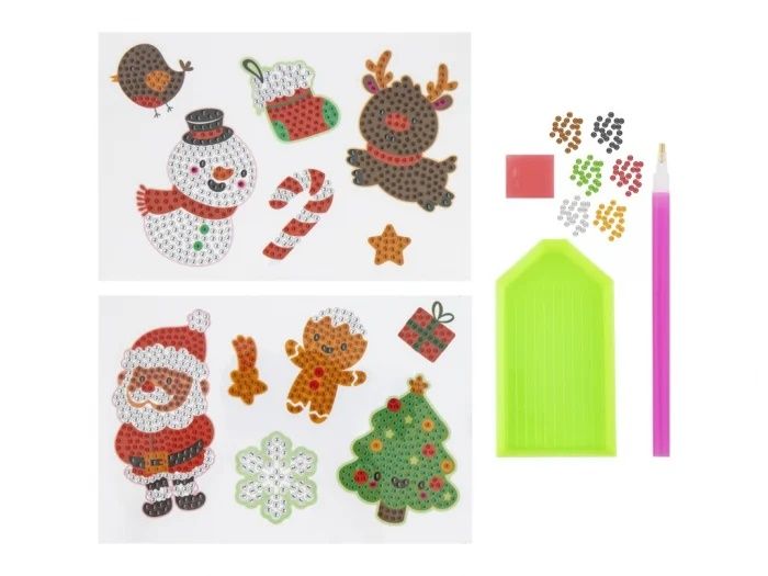 Set creativ cu tematica de Craciun. Creeaza 12 abtibilduri cu tehnica diamond paint
