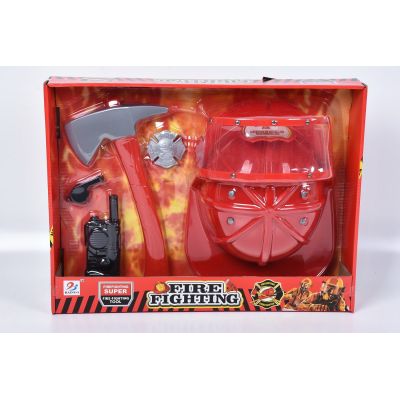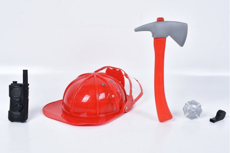 In set sunt incluse multe unelte de ajutor in joaca micului pompier. Casca de protectie, topor de jucarie, insigna, statie de comunicatie si un fluier, toate sunt incluse. Formele speciale si culorile vii incurajeaza copilul sa exerseze si sa se joace stimuland astfel dezvoltarea individuala. Este un adevarat tratament pentru baietii creativi si pasionati de activitatea pompierilor.