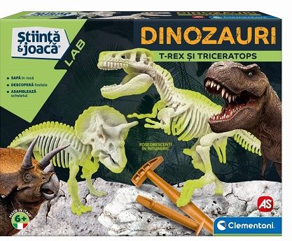 Set de joaca Descopera Dinozaurii T-Rex amp Triceraptor Fluorescent Clementoni