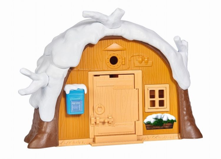 - jucarie casa ursului acoperita cu zapada, cu usa care se deschide, geamuri care se deschid