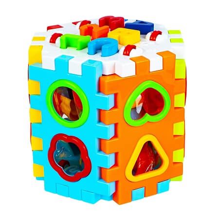 Jucaria educativa este ideala si fascinanta pentru copii mici si va mentine bebelusul sau copilul ocupat si distrat ore in sir cu activitati de invatare. Caracteristici - Jucaria are 8 fete cu rotite si perforatii ce au diferite forme geometrice numere si cifre. - Este produs viu colorat dintr-un material plastic de calitate non-toxic care confera siguranta copilului in momentul cand se joaca. - Functionalitatile hexagonului educativ fetele laterale au 2 perforatii cu forma geometrica diferita baza si partea de sus au rotite ce se pot invartii si de asemenea au perforatii cu forma de litere A B C si cifre 1 2 3 . - Cele 8 feteale jucariei se pot dezasambla sau imbina asemeni unui covoras puzzle. - Cu ajutorul acestei jucarii sortatoare copilul va invata despre culori forme litere si cifre si isi va dezvolta motricitatea dexteritatea si gandirea logica. - Ambalaj plasa. Avertizare Aceasta jucarie contine piese mici. In cazul putin probabil al inghitirii unor astfel de piese consultati de urgenta un specialist. Produsul este nou si comercializat in ambalajul original al producatorului. Imaginile de pe site au caracter informativ. Ambalajul trebuie indepartat recuperat si aruncat de catre un adult inainte de a se da spre utilizare copilului. Nu lasati ambalajele produselor la indemana copiilor. Se recomanda utilizarea produsului sub supravegherea unui adult. Produsul poate contine piese mici care se pot inghiti sau inhala de cei mici existand pericolul de sufocare sau nu este potrivita copiilor mai mici de 3 ani. Pastrati instructiunile si etichetele pentru referinte viitoare. Pastrati produsul departe de foc si nu il lasati in preajma temperaturilor ridicate si a umiditatii. Nerecomandat copiilor cu varsta mai mica de 1 anSpecificatii