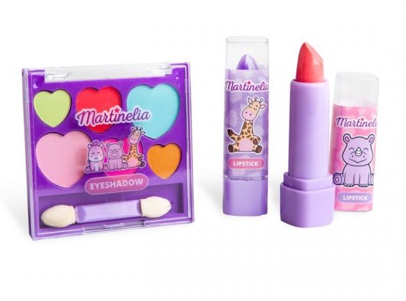 Cu aceste produse cei mici de acasa isi vor putea explora creativitatea si se vor bucura de momente de joaca si distractie in timp ce experimenteaza diferite culori si stiluri. Lasa-ti imaginatia sa zboare Pachetul contine 2 rujuri in tonuri moi si distractive perfecte pentru micii iubitori de frumusete o paleta de farduri de pleoape cu 6 culori asortate si un aplicator. Ingrediente Farduri Talc Mica Stearat De Magneziu Polietilena Dimeticona Palmitat De Etilhexil Ulei Mineral Polibutena Fenoxietanol. Poate Contine Ci 77891. Coloranti Ci 77492 Ci 77499 Ci 77491 Ci 77007 Ci 15850 1 Ci 45410 2 Ci 42090 2 Ci 15850 2 Ci 19140 1. Ruj Ulei Mineral Palmitat De Etilhexil Polietilena Ceara Microcristalina Tridecil Trimelitat Poliizobutena Fenoxietanol. Poate Contine Ci 77891. Coloranti Ci 45410 Ci 42090 Ci 15850. Martinelia este un brand care face parte din grupul Aquarius Cosmetic SL principalul distribuitor de parfumuri si cosmetice in Spania inca din anul 1995. in ziua de astazi brandul se gaseste in toata lumea nu doar in Spania. Produsele brandului la Martinelia pot fi recunoscute cu usurinta datorita ambalajului unic si jucaus. in oferta brandului Martinelia veti gasi seturi de cadouri accesorii pentru par popularele balsamuri de buze aromate si alte accesorii care vin in ambalaje haioase. Copiii vor fi incantati de produse precum setul decorativ in forma de ursulet peria de par unicorn sau periuta de dinti cu sirene. Martinelia ofera pentru cei mici o gama larga de produse distractive si inovatoare in toate culorile curcubeului. Seturi de machiaj rujuri si tot felul de produse si accesorii concepute pentru a tine pasul cu ultimele tendinte. Produsele sunt sigure si prietenoase cu mediul fiind special proiectate pentru a putea fi folosite de copii.Specificatii
