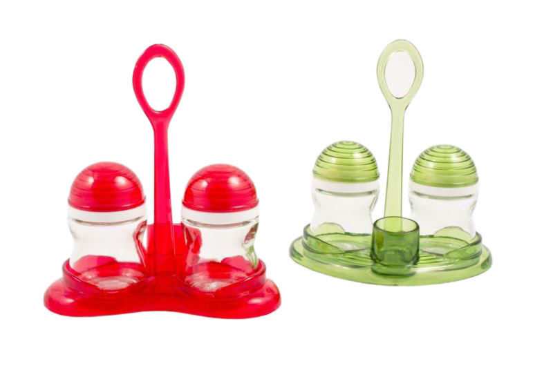 Set sare-piper-suport scobitori, din plastic, de culoare verde, recipiente din sticla cu capacitatea de 90 ml, lungime 150mm, inaltime 170mmSpecificatii