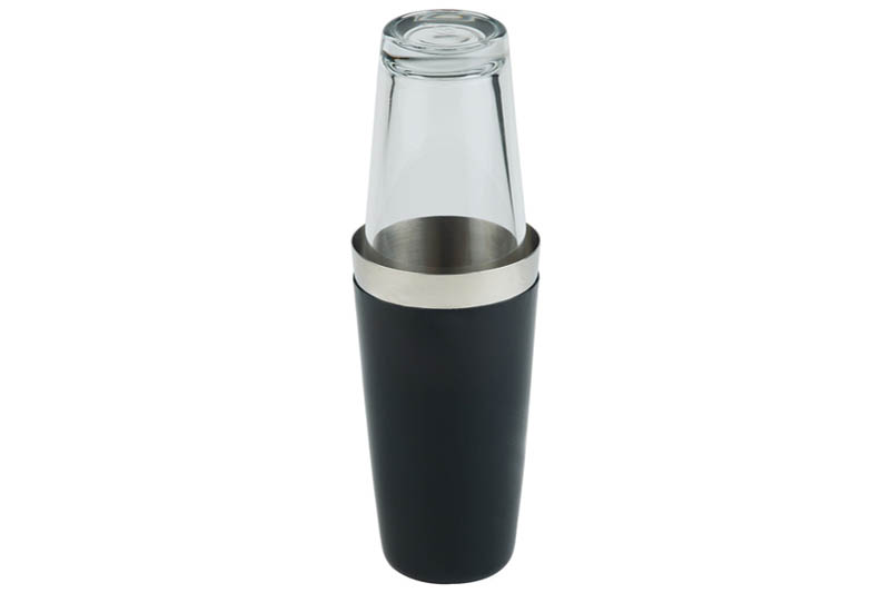Shaker Boston, pahar capacitate 700 ml, inox cu husa din cauciuc culoare neagra si din pahar sticla capacitate 400 ml, inaltime totala 300 mm, ambalaj cu 2 bucatiSpecificatii