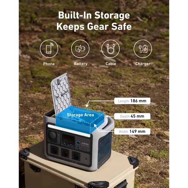 1: Ce tipuri de articole pot incapea in spatiul de stocare incorporat pentru statia de alimentare portabila Anker SOLIX C800?