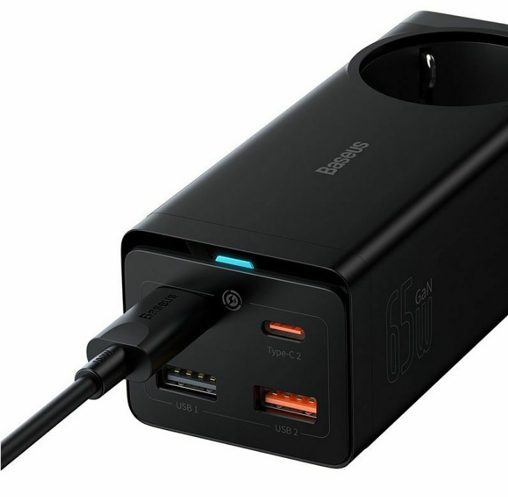 Statie de incarcare Baseus GaN3 Pro Desktop Powerstrip, 65W, 2x USB-C, 1x USB, AC