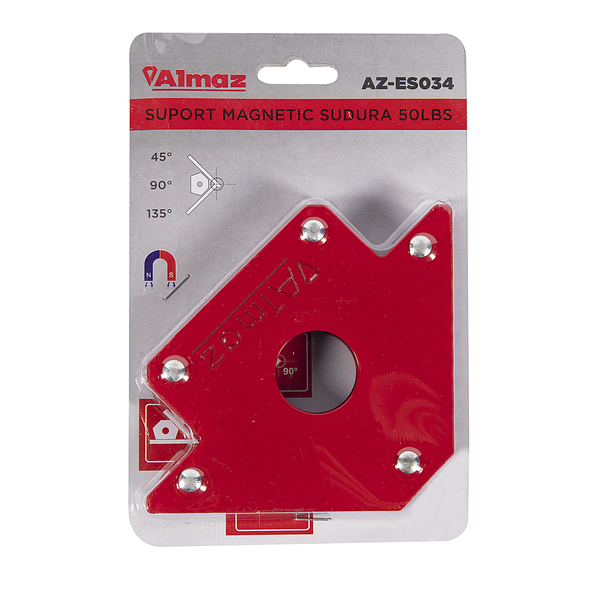 Domeniu de utilizare: • se pot fixa si prinde rapid piese metalice pentru sudura • poate fi utilizat pentru fixarea elementelor metalice in timpul lucrarilor de sudura, gaurire, vopsire etc; • pentru suduri plate sau a utilizarii fixe si la altitudine mica. Avantaje suportul magnetic sudura 50lbs, Almaz AZ-ES033: • permite imbinarea precisa a materialelor pentru unghiuri de 45˚, 90˚, 135˚; • potrivit pentru fixarea pieselor plane din metale feroase de diferite forme si dimensiuni la unghiuri externe si interne. • ajutor excelent pentru orice lucrare de sudura si montaj la metale feroase.Specificatii