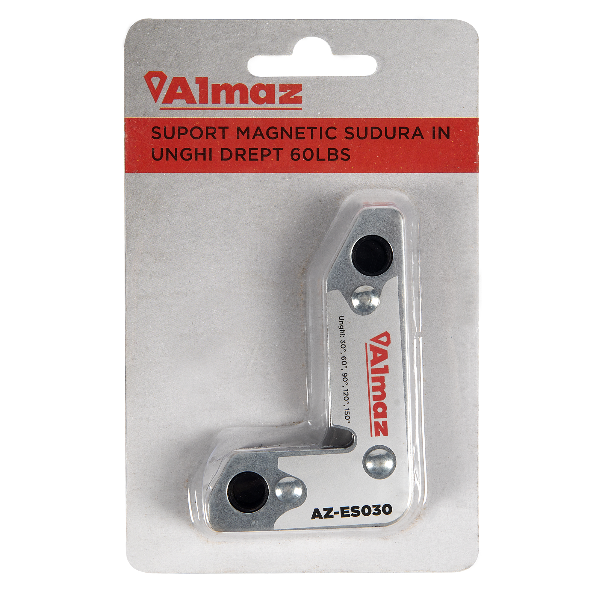 Suport magnetic sudura in unghi drept, 60lbs, Almaz AZ-ES030 Domeniu de utilizare: • se pot fixa si prinde rapid piese metalice pentru sudura; • poate fi utilizat pentru fixarea elementelor metalice in timpul lucrarilor de sudura, gaurire, vopsire etc; • ideal la montajul si sudura structurilor metalice. Avantaje suportul magnetic sudura in unghi drept, 60lbs, Almaz AZ-ES030: • permite imbinarea precisa a materialelor pentru unghiuri de 30°,60°,90°,120°, 150°; • potrivit pentru fixarea pieselor plane din metale feroase de diferite forme si dimensiuni la unghiuri externe si interne. • ajutor excelent pentru orice lucrarare de sudura si montaj la metale feroase.Specificatii