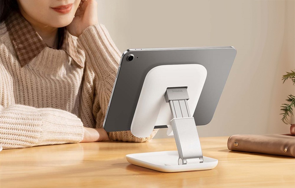 Designul pliabil este unul dintre cele mai mari avantaje ale suportului pentru tableta Baseus. Utilizand un mecanism "flip-open", acesta permite desfasurarea si plierea instantanee, care se poate face cu usurinta cu o singura mana. Atunci cand utilizati suportul, designul sau stabil ofera un suport sigur pentru dispozitivul dvs. Pe de alta parte, cand este timpul sa il depozitati, il veti plia la o dimensiune compacta in cel mai scurt timp, astfel incat sa nu ocupe mult spatiu. Este solutia perfecta pentru cei care pretuiesc functionalitatea si economisesc spatiu.