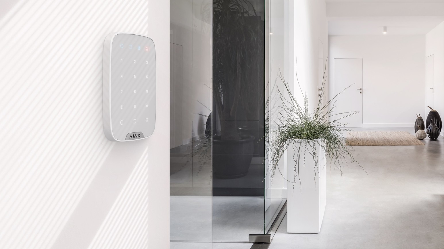 Tastatura tactilă wireless este utilizată pentru a arma/dezarma un sistem de securitate Ajax. Este montat in camera langa usa de la intrare pentru a oferi acces rapid la tastatura.