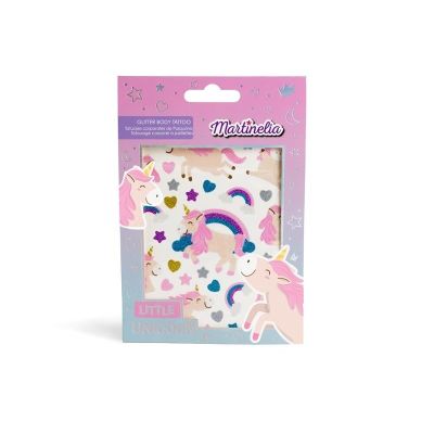 Decoreaza-ti corpul cu cei mai frumosi unicorni cu acest set de tatuaje cu sclipici din colectia Little Unicorn de la Martinelia.Specificatii