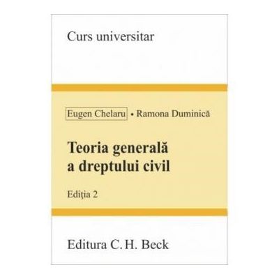 Continutul lucrarii este axat pe problemele ridicate de teoria generala a dreptului civil incepand cu caracterizarea dreptului civil si finalizand cu prescriptia si decaderea care sunt tratate din perspectiva reglementarilor continute de Codul civil intrat in vigoare la 1 octombrie 2011. Deoarece in multe materii Codul civil nu aduce noutati absolute ci fie imprumuta solutiile continute de vechea reglementare fie isi insuseste unele dintre opiniile exprimate de doctrina in problemele controversate autorul a acordat atentie aspectelor de continuitate si de noutate. In acest context sunt semnalate fundamentele teoretice ale solutiilor noi si sunt valorificate critic jurisprudenta si doctrina anterioare rezultatul fiind identificarea solutiilor care isi mentin actualitatea. Pastrand structura initiala si viziunea preponderent didactica editia 2 cuprinde analiza modificarilor legislative intervenite in ultimii ani si valorifica deciziile obligatorii ale Inaltei Curti de Casatie si Justitie relevante pentru institutiile studiate. De asemenea este completata cu exemple necesare pentru initierea in studiul dreptului civil precum si cu trimiteri catre opinii doctrinare actuale si de interes pentru aceasta materie. Recomandare Drept civil. Persoanele. Din cuprins Caracterizare generala a dreptului civil Raportul juridic civil Actul juridic civil Prescriptia extinctiva si decaderea Puncte forte contine dezvoltari teoretice valoroase pentru tematica abordata sunt valorificate cele mai noi rezultate ale confruntarilor doctrinare in domeniu cuprinde prezentarea legislatiei conexe si a jurisprudentei relevante contine ample referinte bibliografice Eugen CHELARU a fost profesor universitar doctor Decan al Facultatii de Stiinte Juridice si Administrative Universitatea din Pitesti avocat. Ramona DUMINICA este lector universitar doctor Universitatea Nationala de Stiinta si Tehnologie POLITEHNICA BucurestiSpecificatii
