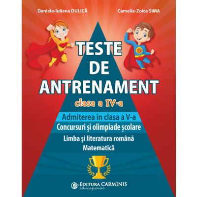 Auxiliarul Teste de antrenament se adreseaza elevilor de clasa a IV-a care vor sustine proba de admitere in clasa a V-a la colegiile nationale sau care doresc sa se pregateasca in vederea participarii la olimpiadele si concursurile scolare. Este structurat in 14 teste ce contin itemi corespunzatori disciplinelor limba romana si matematica spre intampinarea eventualelor dificultati in exersarea subiectelor propriu-zise. Itemii creati pentru fiecare subiect sunt ersi si cuprind cat mai multe cerinte posibile pentru astfel de probe. Acestia respecta programa scolara pentru clasa a IV- a curriculum extins. La finalul cartii pentru fiecare dintre cele 14 teste este adaugat un barem detaliat conceput dupa modelele subiectelor ce s-au constituit in probe la diferite concursuri si olimpiade scolare inclusiv concursuri de admitere in clasa a V-a organizate in anii precedenti. In acest fel elevii se pot autoevalua intr-un mod eficient si corect si vor putea face fata cu succes unor astfel de competitii.Specificatii