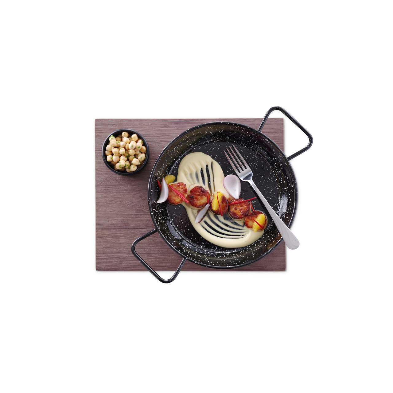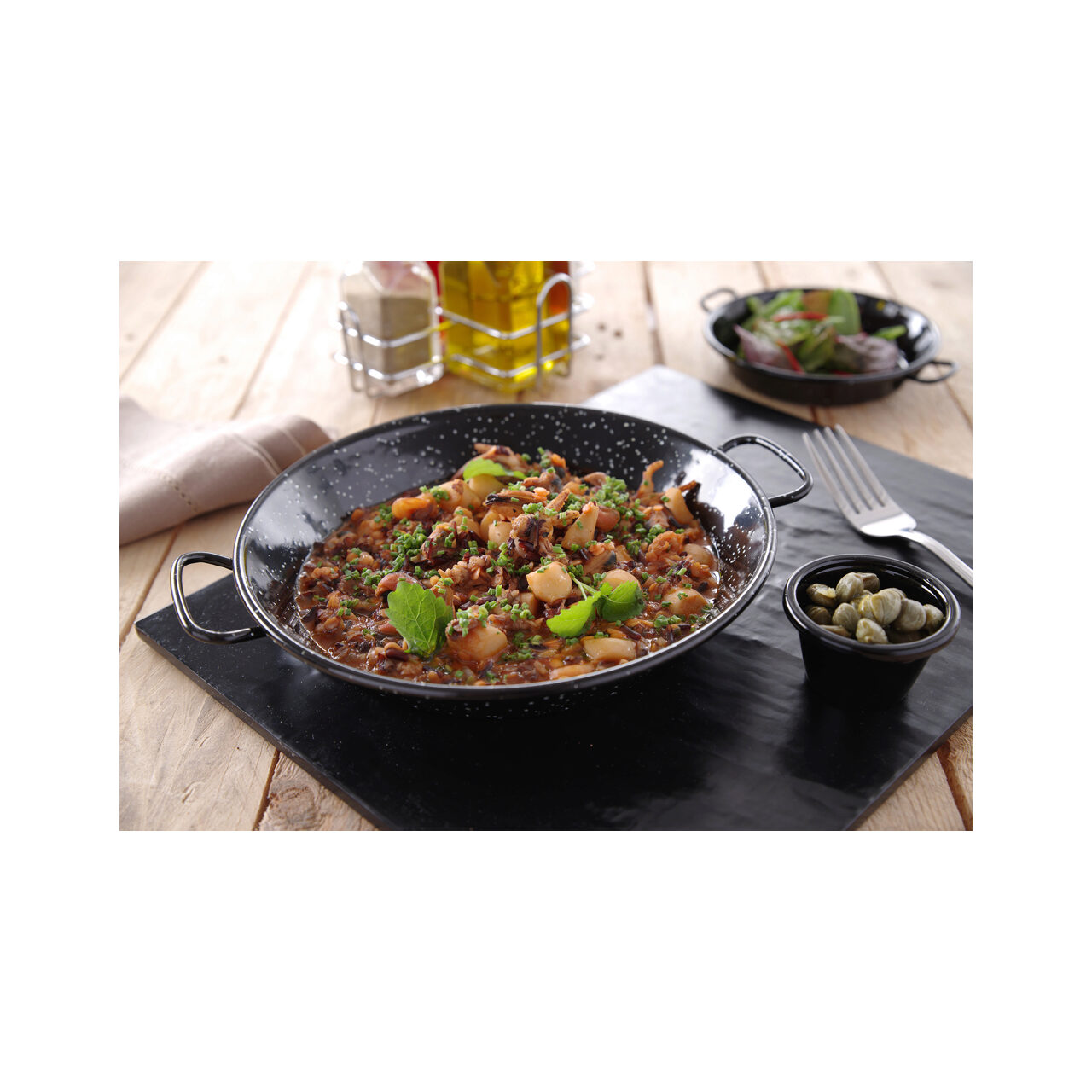 Tigaie paella cu 2 manere, otel emailat, 12 cm diametru x 2,5 cm inaltime , Hendi, potrivita si pentru servire