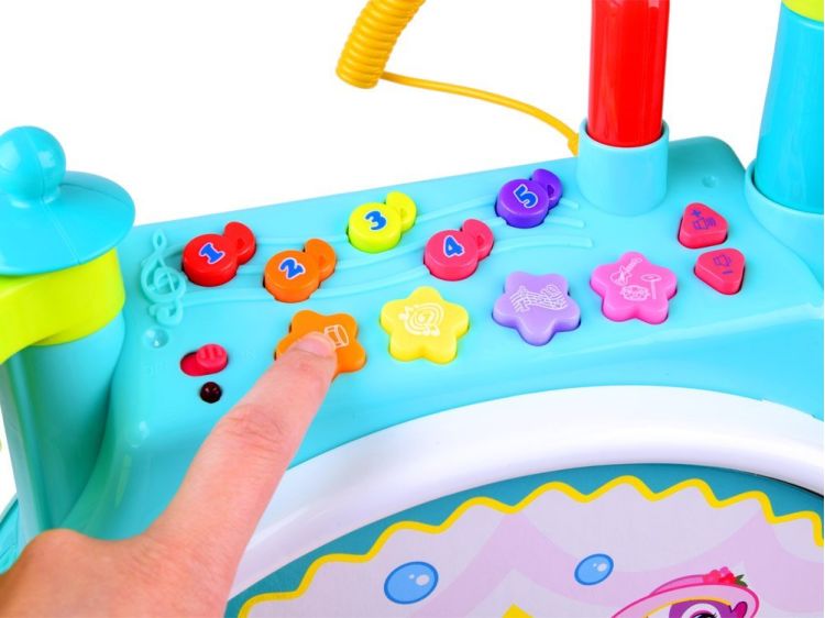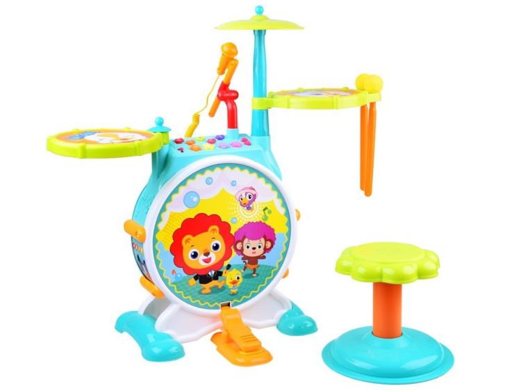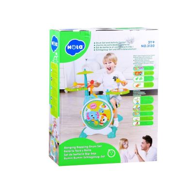 Setul de tobe Hola Banging Bopping pentru copii va va incuraja micuta stea rock sa gandeasca si sa actioneze creativ! Setul de baterii inteligente are doua tobe, un tambur de bas si un cinal. �n plus, exista microfonul stand-up care le va purta vocea peste camera. Banging Bopping Drum poate fi comutat intre doua moduri (Melody si Drum), care ii permit copilului sa se joace impreuna cu melodiile sau sa se joace pe propriul canal. Butoanele de control al volumului va permit sa opriti muzica atunci cand aveti nevoie sau sa o intoarceti pentru a le asculta. Jucariile muzicale ofera copiilor o oportunitate de a-si perfectiona talentul pentru muzica in timp ce se joaca si experimenteaza cu sunetul. Caracteristicile produsului: - Tambur de baza de lucru, toiaguri moi, tambururi si scaune de jucarie, - Melodii si sunete preprogramate, - Butoane de iluminare, - Cinele: produc efecte sonore asemanatoare vietii, - Pedala de bas: pentru sunete de bas realiste, - Control volum mare / mic, - Microfon detasabil, - Asamblare rapida si usoara, Include: - Bass Drum, Cinele, 2 Snare Tobe, Microfon, 2 Sticks Drum & Scaun, - 5 butoane de ritm, - 4 butoane de selectare a modului de iluminare, - Sunete de tambur, - 10 Melodii, - 3 ritmuri