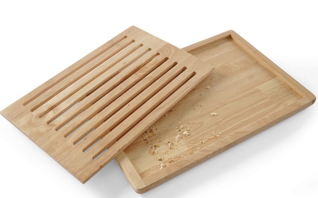 Tocator pentru paine din lemn. Interzisa spalarea la masina de vase . Din lemn, cu gratar detasabi. l Cu 4 picioare anti-alunecare 475x322 mm. Greutate neta 1,8 kg.