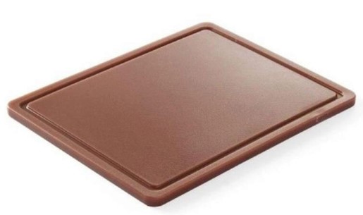 Tocator maro, 26.5x32.5x(H)1.2 cm - GN1/2, cu sant de scurgere, polietilena HDPE 500, respecta normele de igiena HACCP, Hendi