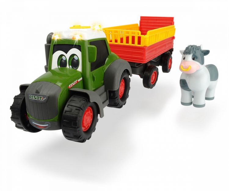 Tractoras cu remorca pentru bebelusi, cu licenta Fendt, cu sunet si lumina, si vacuta inclusa. Ridicati-va manecile - chiar si mainile copiilor mici pot apuca bine tractorul si, datorita functiei de roti libere, pur si simplu il imping inainte si inapoi. Acum lucrarea poate veni! Tractorul cu roti libere ofera o experienta unica de joaca pentru toti iubitorii de ferma. Datorita dimensiunii impreuna cu functia de lumina si sunet, precum si a remorcii pentru animale, inclusiv o figurina vacuta, sunt oferite dimensiuni de joc complet noi. Pentru a sprijini dezvoltarea celor mai tineri, exista parti in miscare, precum si lumina si sunet - ideale pentru promovarea abilitatilor motorii din prima copilarie. Desigur, tractorul este rezistent la culoare, rezistent la saliva, fara piese mici care ar putea fi inghitite si cu colturi rotunjite.