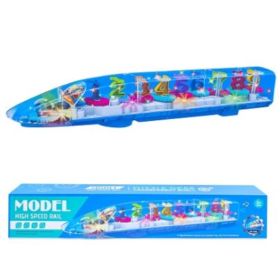 Aceasta jucarie multicolora va deveni in scurt timp una din jucariiile preferate ale copilului. Trenuletul are muzica lumini colorate si un angrenaj de rotite cu litere si cifre. Caracteristici - Tenuletul are carcasa transparenta si interior multicolor. - Montajul intern vizibil cu rotite ce se invart aduce un plus de frumusete si atractie acestei jucarii. Pe rotite sunt fixate litere si cifre. - In timpul functionarii pe prima treapta trenuletul se lumineaza intermitent in erse culori iar pe treapta a doua se emit lumini muzica si mecanismul de rotite este activat rasucind cifrele si literele. - Jucaria are roti autopivotante ceea ce face ca la intalnirea unui obstacol aceasta sa-si schimbe directia astfel incat sa nu se opreasca. - Trenuletul este alimentat de 3 baterii tip AA R6 de 1 5V neincluse in pachet. Bateriile se introduc in pozitia corecta respectandu-se polaritatea. Compartimentul bateriilor trebuie sa fie curat. Bateriile epuizate se schimba si se recicleaza conform normelor in vigoare. In cazul neutilizarii jucariei pentru mai mult timp se scot bateriile pana in momentul refolosirii. - Ambalaj cutie din carton. Dimensiune trenulet 36. 5x5x6. 7 cm Avertizare Produsul este nou si comercializat in ambalajul original al producatorului. Imaginile de pe acest site au caracter informativ. Ambalajul trebuie indepartat recuperat si aruncat de catre un adult inainte de a se da spre utilizare copilului. Nu lasati ambalajele produselor la indemana copiilor. Se recomanda utilizarea produsului sub supravegherea unui adult. Produsul poate contine piese mici care se pot inghiti sau inhala de cei mici existand pericolul de sufocare sau nu este potrivita copiilor mai mici de 3 ani. Pastrati instructiunile si etichetele pentru referinte viitoare. Pastrati produsul departe de foc si nu il lasati in preajma temperaturilor ridicate si a umiditatii. Datorita masurarii manuale a produsului poate exista o diferenta minora fata de dimensiunea reala a produsului.Specificatii