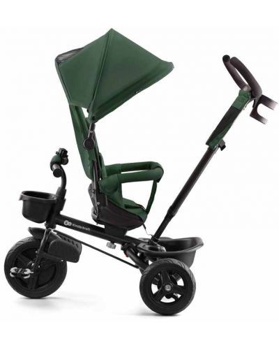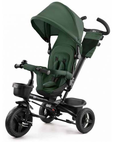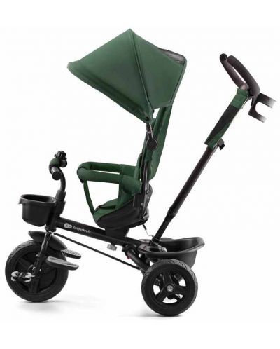 Tricicleta AVEO MYSTIC GREEN de la Kinderkraft este un produs potrivit pentru copiii intre 9 luni si aproximativ 5 ani. Este dotata cu roti rezistente care nu trebuie umflate. Un atu suplimentar al tricicletei AVEO MYSTIC GREEN este scaunul pivotant dar face posibila reglarea cu spatele sau fata catre directia de mers. Este un produs care creste impreuna cu copilul constructia modulara pliabila permite transformarea usoara si potrivirea in functie de varsta copilului. Roti mari pentru orice teren Tricicleta AVEO MYSTIC GREEN are roti care nu trebuie umflate. Sunt impenetrabile si asigura o buna aderenta la sol indiferent daca mergeti pe trotuar sau pe o strada cu pietris. Scaun pivotant Scaunul se poate roti cu fata sau spatele catre directia de mers. De aceea tricicleta este potrivita incepand cu varsta de 9 luni. Va fi un companion de nepretuit pentru fiecare plimbare. Atunci cand cel mic creste o vei transforma cu usurinta pe AVEO MYSTIC GREEN intr-o tricicleta independenta. Pliere usoara Vei lua cu tine peste tot aceasta tricicleta - AVEO MYSTIC GREEN se pliaza in doar cateva clipe. Incape in portbagajul masinii dar si intr-un dulap daca nu ai destul spatiu in casa ca sa tii tricicleta desfacuta. Siguranta in orice situatie Tricicleta este dotata cu centuri de siguranta in 3 puncte si bara de protectie. Spatar inalt si comod Spatarul inalt le permite celor mici sa se sprijine liber in timpul mersului. Mersul pe tricicleta AVEO MYSTIC GREEN este foarte confortabil indiferent de directia in care este orientat scaunul. Doua ghidoane AVEO MYSTIC GREEN este o tricicleta adaptat atat copiilor cat si parintilor. Manerul reglabil are un mecanism special cu ajutorul caruia poti bloca posibilitatea de virare de catre copil. Vei putea astfel manevra singur in directia potrivita. Mecanism de pedalare libera Functia de pedalare libera ii permite copilului sa pedaleze fara a pune bicicleta in miscare. Trebuie doar misti un mic maner pentru ca pedalele sa nu se mai invarta atunci cand copilul oboseste. Manerul parintelui reglabil Poti regla cu usurinta manerul lui AVEO MYSTIC GREEN in functie de inaltimea ta. In doar cateva clipe vei regla manerul la inaltimea aleasa pentru ca mersul cu tricicleta sa fie confortabil si pentru parinte. Suporturi rabatabile pentru picioare Langa roata din fata sunt plasate suporturi pe care copilul isi poate sprijini picioarele obosite de pedalat. Aceasta sunt potrivite si pentru copiii mai mici care nu ajung inca la pedale. Copertina pliabila AVEO MYSTIC GREEN are o copertina pliabila mare care il protejeaza pe copil de soare si vant. Ii poti regla unghiul de inclinare pentru ca cel mic sa aiba mereu umbra in timpul plimbarii. Accesorii practice Tricicleta include o geanta pentru lucruri mici 2 cosuri unul langa ghidon si celalalt in spatele scaunului si un suport pentru paharul parintelui. Fabricatie Materiale Cadru otel tesatura poliester Dimensiuni Desfacuta 112 x 50 5 x 106 5 cm Diametrul rotilor fata 26 cm spate 21 5 cm naltimea ghidonului - 57 cm Lungimea spatarului - 65 cm Manerul parintelui - 76 86 89 cmSpecificatii