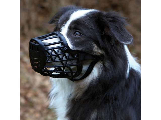 Botnita confectionata din plastic. Impiedica muscatura. Cu curea din nailon, reglabila complet.