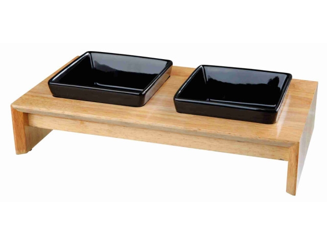 Labradorul meu aste foarte atras de acest set, are atat bobite cat si apa la "indemana". Lemnul este foarte elegant si materialul antiderapant il face stabil.