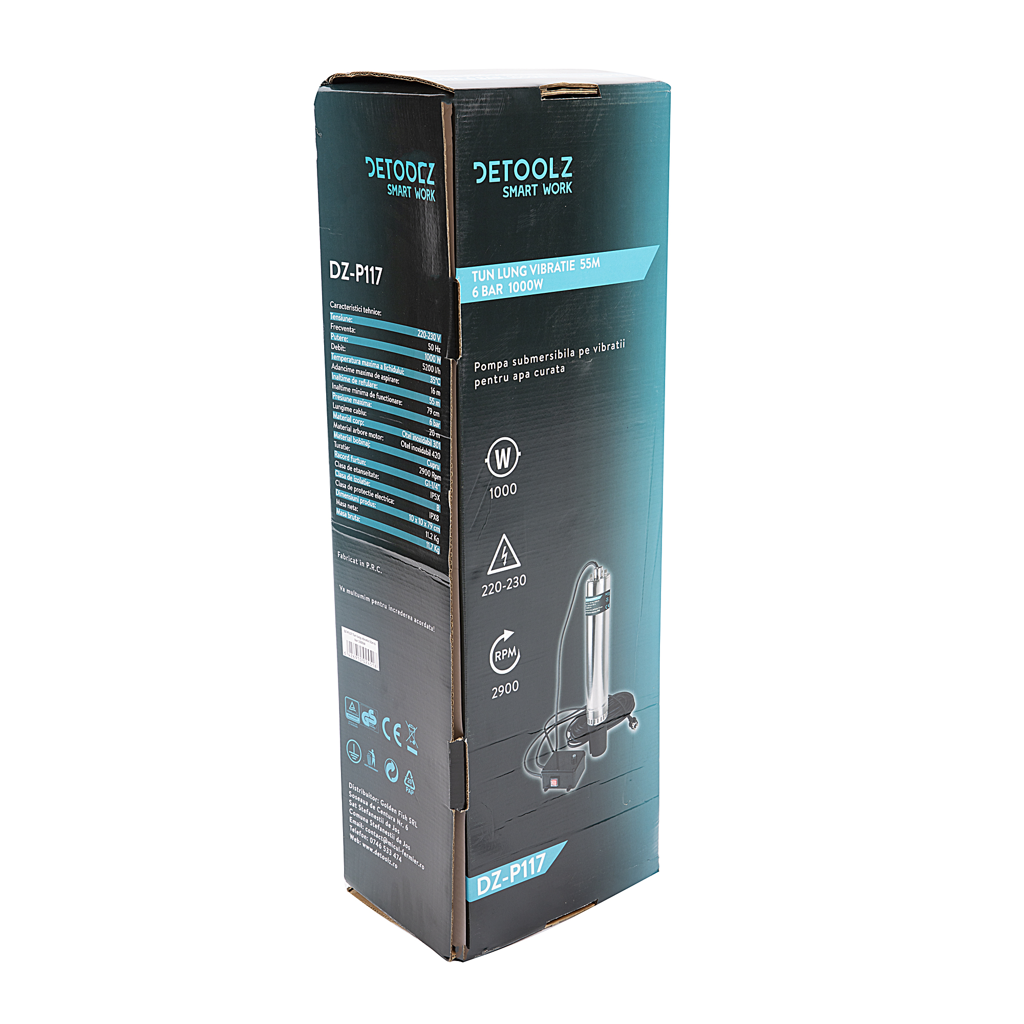 Tunul lung de adancime 55m 6 bar 1000W 5200 l h Detoolz DZ-P117 este proiectat pentru pomparea apei curate si lichide non-corozive. Avantajele majore ale acestui tun lung sunt fiabilitatea capul de descarcare mare si capul de aspirare mare. Poate fi utilizata la temperaturile mediului ambiant de maxim 40 deg C iar temperatura apei sa nu depaseasca 35 deg C. Avantaje tunul lung de adancime 55m 6 bar 1000W 5200 l h Detoolz DZ-P117 Elemente de etansare fiabile care protejeaza motorul impotriva umezelii. Tunul are o masa optima pentru a avea stabilitate dar si pentru a fi usor de transportat Consum redus de energie Ofera presiune ridicata debit mare Constructie robusta din materiale de fabricatie de cea mai buna calitate usoare si rezistente pentru o durata de viata extinsa Turbina din bronz rezistenta la coroziune Debit ridicat Motor puternic. Continut colet tunul lung de adancime 55m 6 bar 1000W 5200 l h Detoolz DZ-P117 Tun lung de adancime Manual de instructiuni Cutie de transport.Specificatii