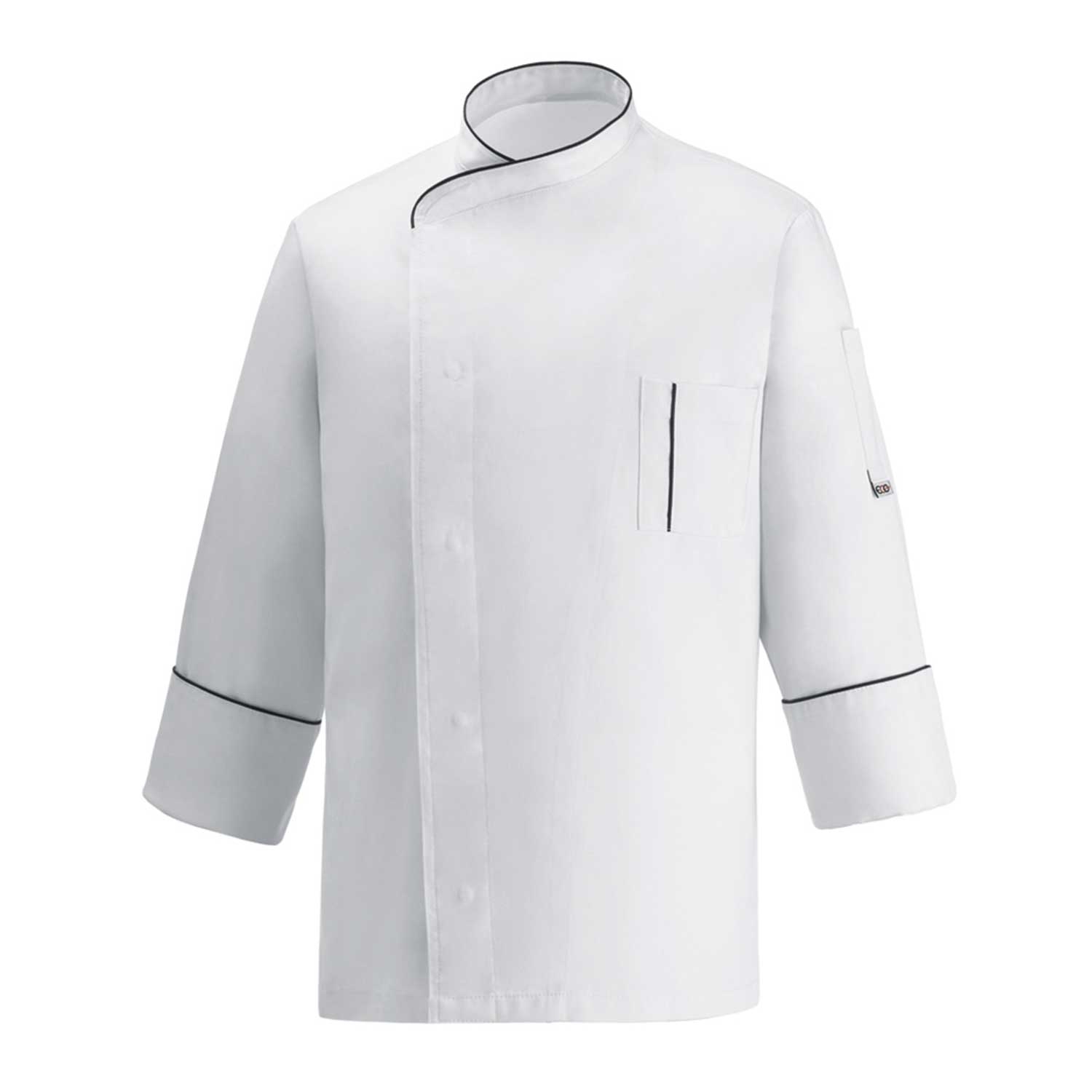 Tunica bucatar model Cesare White, cu maneca lunga, cu buzunar la piept si pe maneca, rezistenta la apa, nu necesita calcare, realizata din microfibra 100%, culoare alba, marimea SSpecificatii