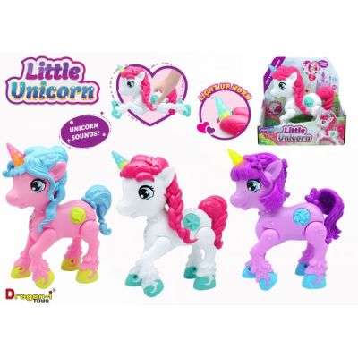 Tuturor fetitelor le plac Unicornii Noul unicorn cu lumini si sunete de la Dragon-I are urmatoarele functii Cornul se lumineaza Emite sunete nechezat galopat si alte sunete captivante.Specificatii