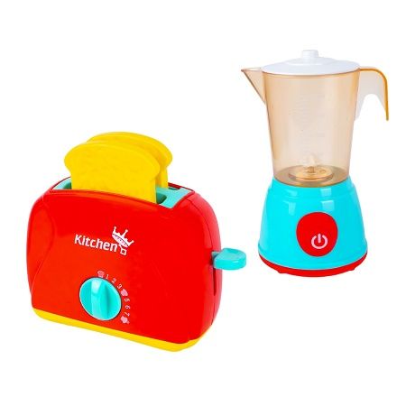 Ustensile bucatarie - blender si prajitor de paine viu colorate care ii vor incanta pe copii si ii va transforma in mici bucatari iscusiti si pasionati. Caracteristici - Aparatele electrocasnice de jucarie sunt confectionate din material plastic. - Setul contine un blender un prajitor de paine si 2 felii de paine. - Blenderul are recipient detasabil lumini sunet ce imita realitatea si rotatie a mixerului. - Prajitorul are maneta si un temporizator care face ca feliile de paine sa sara in sus la un anumit interval de timp. - Blenderul functioneaza cu 2 baterii tip AA 1 5 V neincluse . Bateriile se introduc in pozitia corecta respectandu-se polaritatea. Compartimentul bateriilor trebuie sa fie curat. Bateriile epuizate se schimba si se recicleaza conform normelor in vigoare. In cazul neutilizarii jucariei pentru mai mult timp se scot bateriile pana in momentul refolosirii. - Cu aceste aparate electrocasnice copiii se pot simti ca intr-o bucatarie adevarata si vor fi incantati sa prepare un mic dejun sanatos singuri sau impreuna cu prietenii astfel isi vor imbunatatii dexteritatea si imaginatia si isi vor cultiva abilitatile sociale. - Jucaria este ambalata in cutie din carton cu fereastra. Dimensiune aparate electrocasnice blender - 19. 5x13x10. 5 cm prajitor - 18. 5x12. 2x7. 5 cm Dimensiune felie de paine 7. 8x7. 5x1 cm Avertizare Produsul este nou si comercializat in ambalajul original al producatorului. Imaginile de pe site au caracter informativ. Ambalajul trebuie indepartat recuperat si aruncat de catre un adult inainte de a se da spre utilizare copilului. Nu lasati ambalajele produselor la indemana copiilor. Se recomanda utilizarea produsului sub supravegherea unui adult. Produsul poate contine piese mici care se pot inghiti sau inhala de cei mici existand pericolul de sufocare sau nu este potrivita copiilor mai mici de 3 ani. Pastrati instructiunile si etichetele pentru referinte viitoare. Pastrati produsul departe de foc si nu il lasati in preajma temperaturilor ridicate si a umiditatii. Datorita masurarii manuale a produsului poate exista o diferenta minora fata de dimensiunea reala a produsului.Specificatii