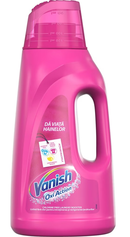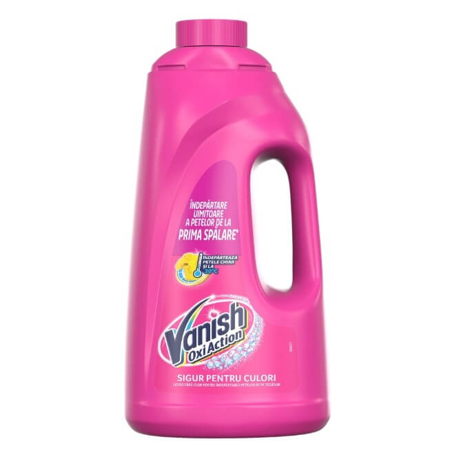 Vanish Pink este un aditiv ce indeparteaza petele de pe rufe colorate si albe, se poate folosi pe orice fel de pata sau culoare.