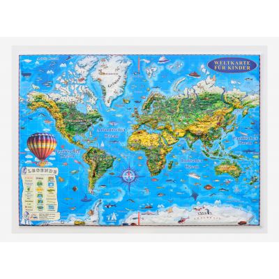 Weltkarte fur kinder, Reliefkarte 3D-Format, 450x330mm (3DGHLCP45-DE)