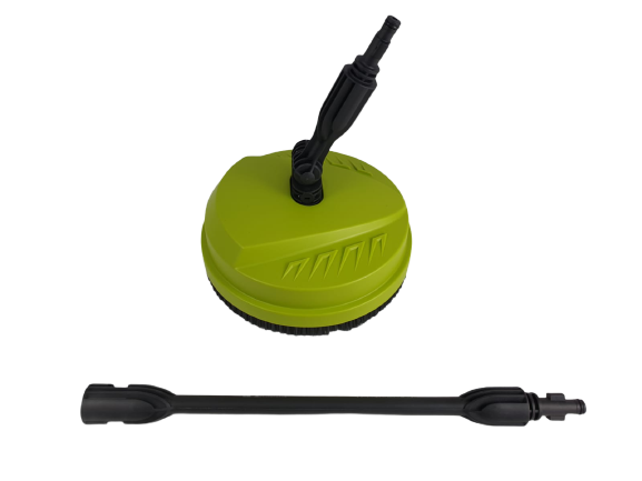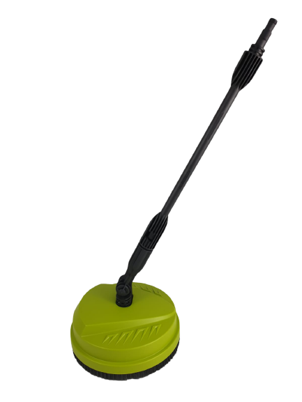 Accesoriu poate fi atasat aparatului de spalat cu presiune la mufa pistolului cu prindere rapida. Circumferinta dispozitivului este prevazuta cu perie deasa cu fire din plastic. Apa va fi evacuata in interiorul acestui accesoriu de spalat prin bratul rotativ cu doua duze cu presiune. Poate fi conectat la orice tip de aparat de spalat cu presiune avand tija cu conectare standard.