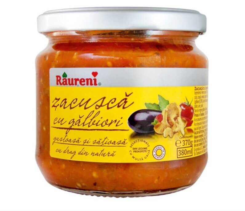 Raureni aduce consumatorilor un sortiment de zacusca ce valorifica apreciatele ciuperci galbiori, pe care ii scalda intr-un amestesc de legume sanatoase de gradina.